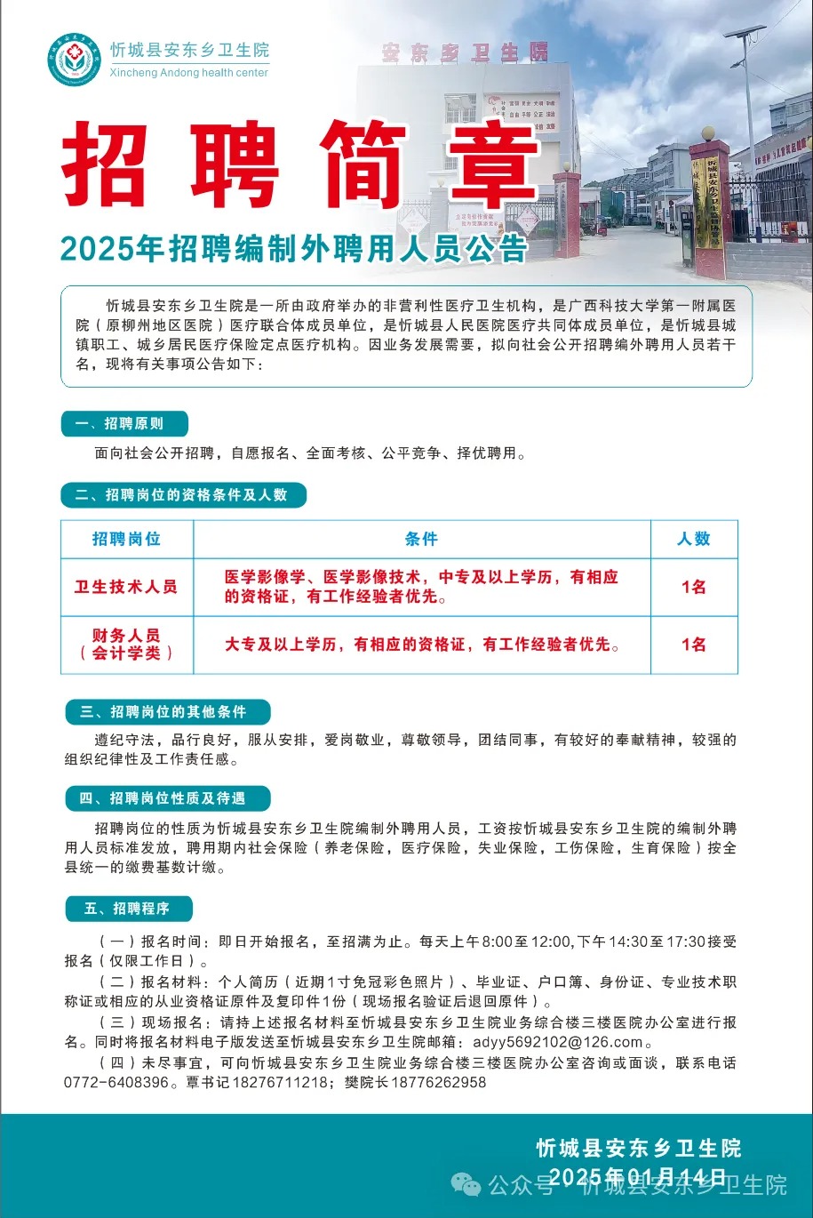 2025年來(lái)賓忻城縣安東鄉(xiāng)衛(wèi)生院招聘2人簡(jiǎn)章