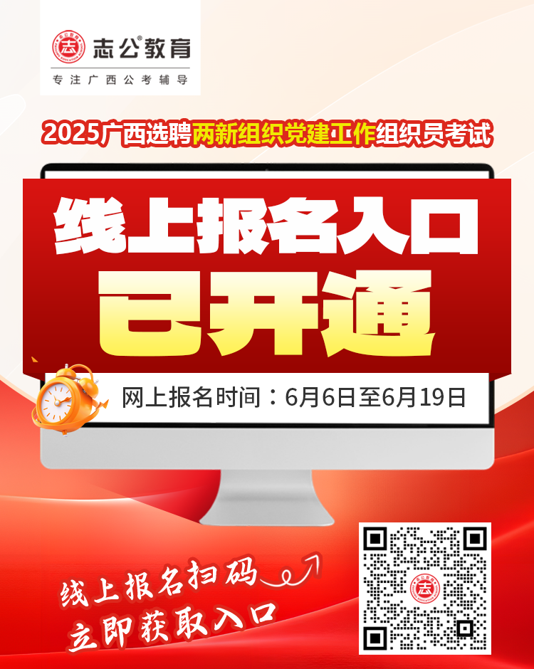 報名入口開通!2025年廣西壯族自治區(qū)選聘兩新組織黨建工作組織員今起報名,附免費備考資料!