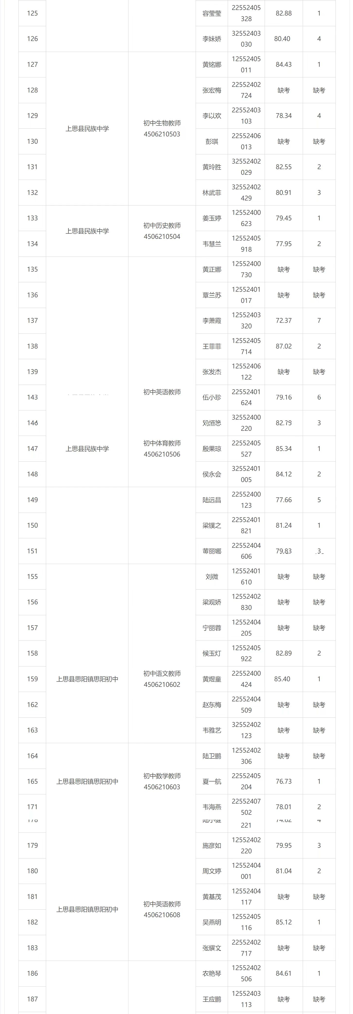 2025年防城港市中小學(xué)教師公開(kāi)招聘面試成績(jī)公布