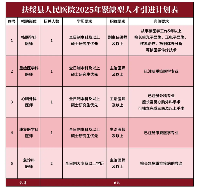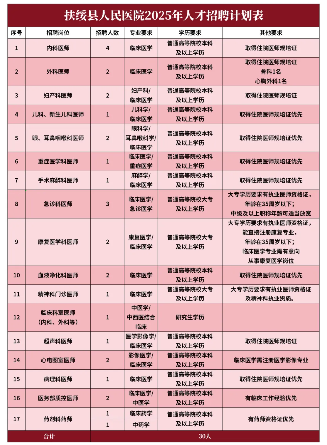 扶綏縣人民醫(yī)院2025年人才招聘計劃