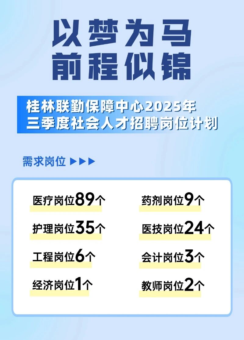 桂林聯(lián)勤保障中心2025年三季度社會人才招聘崗位計劃169個