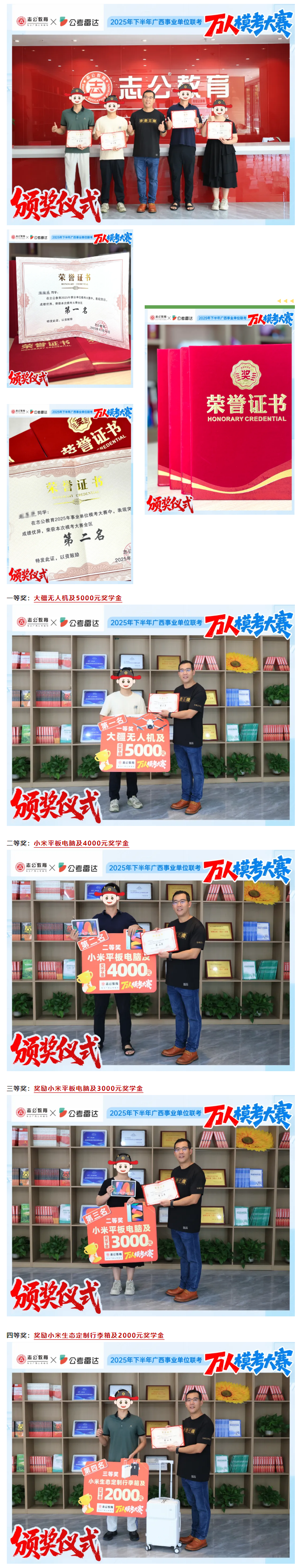 ??即筚惖膬r(jià)值不止于排名,更在于幫大家提前適應(yīng)節(jié)奏、找準(zhǔn)薄弱項(xiàng),這些獎(jiǎng)勵(lì)是認(rèn)可,更是激勵(lì)!愿大家?guī)е@份動(dòng)力繼續(xù)沖刺備考目標(biāo),頒獎(jiǎng)儀式落幕,但備考沖刺的號(hào)角剛剛吹響,未參與本次模考的考生無(wú)需遺憾,志公教育下一期??即筚惣磳?dòng)!依舊是全真考場(chǎng)復(fù)刻、專業(yè)師資護(hù)航、豐厚獎(jiǎng)品加持!立刻報(bào)名參與大賽吧,說(shuō)不定下一個(gè)登臺(tái)領(lǐng)獎(jiǎng)的就是你!