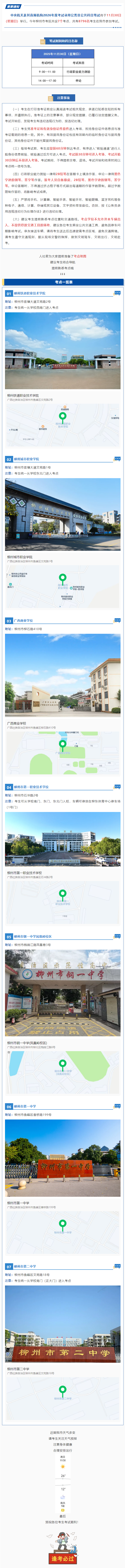 2026年度國(guó)家公務(wù)員筆試(柳州考區(qū))溫馨提示及考場(chǎng)分布
