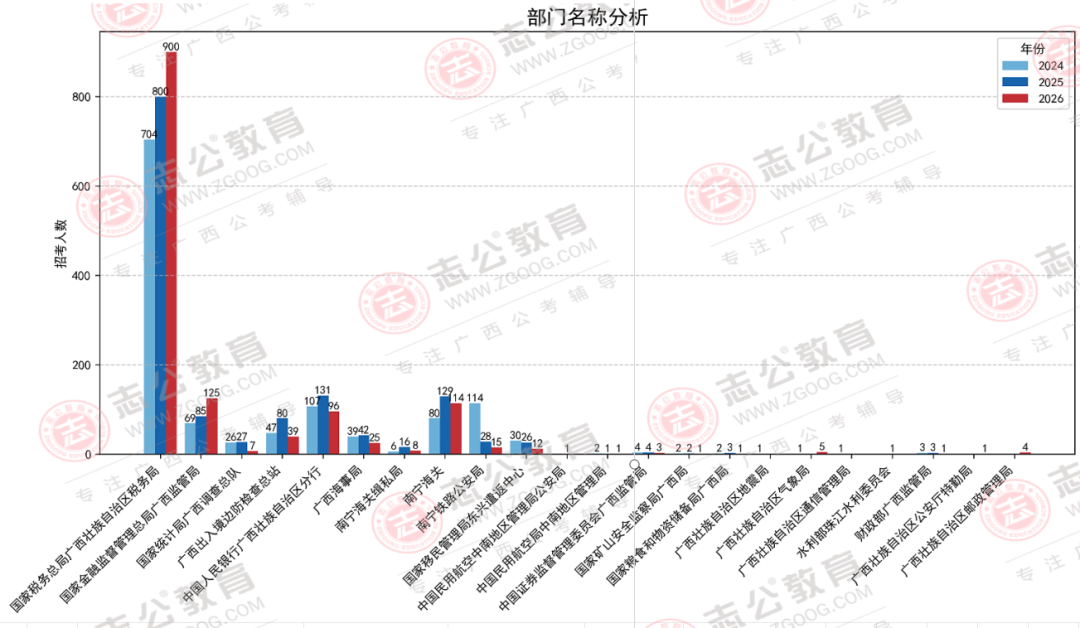 在今年,廣西國稅系統(tǒng)這個招考“大戶”,招錄漲到了900人,職位數(shù)占比66%。此外,國家金融監(jiān)督管理總局廣西監(jiān)管局招125人,呈正增長,與2025年國考相比漲幅47%。南寧海關(guān)從2025年招錄129人,2026年只招錄114人,相比縮減了11.63人。